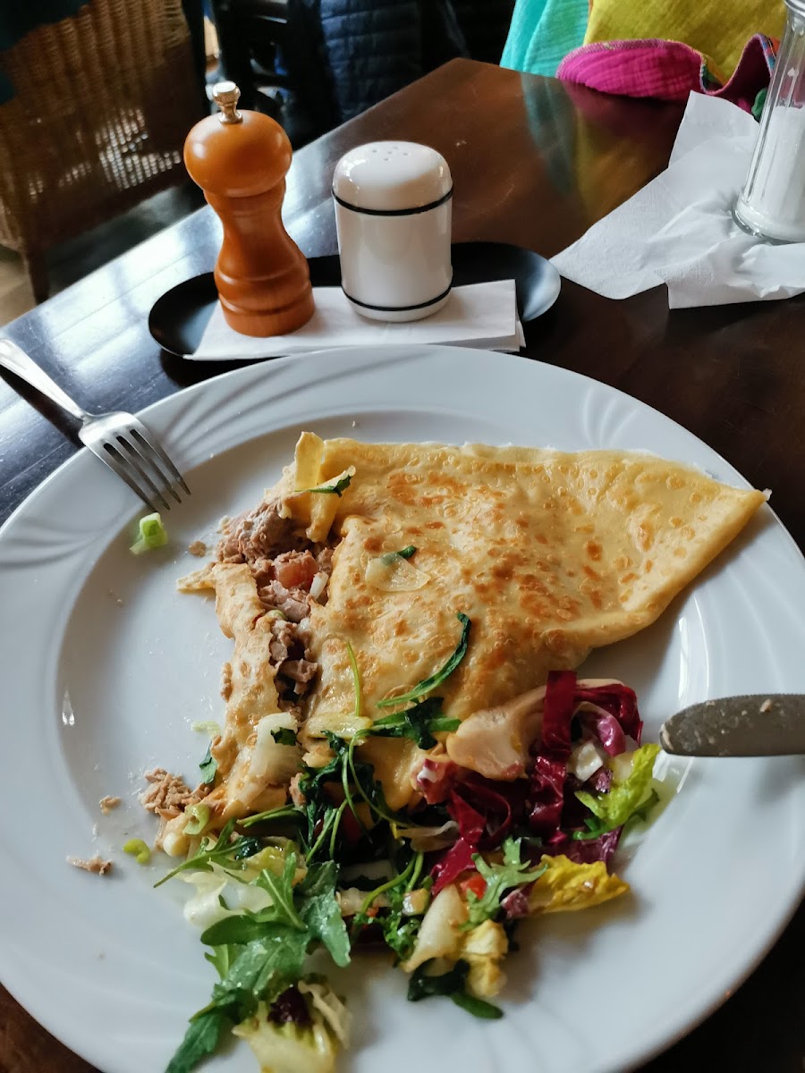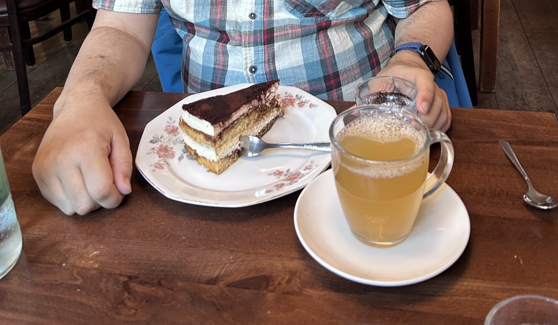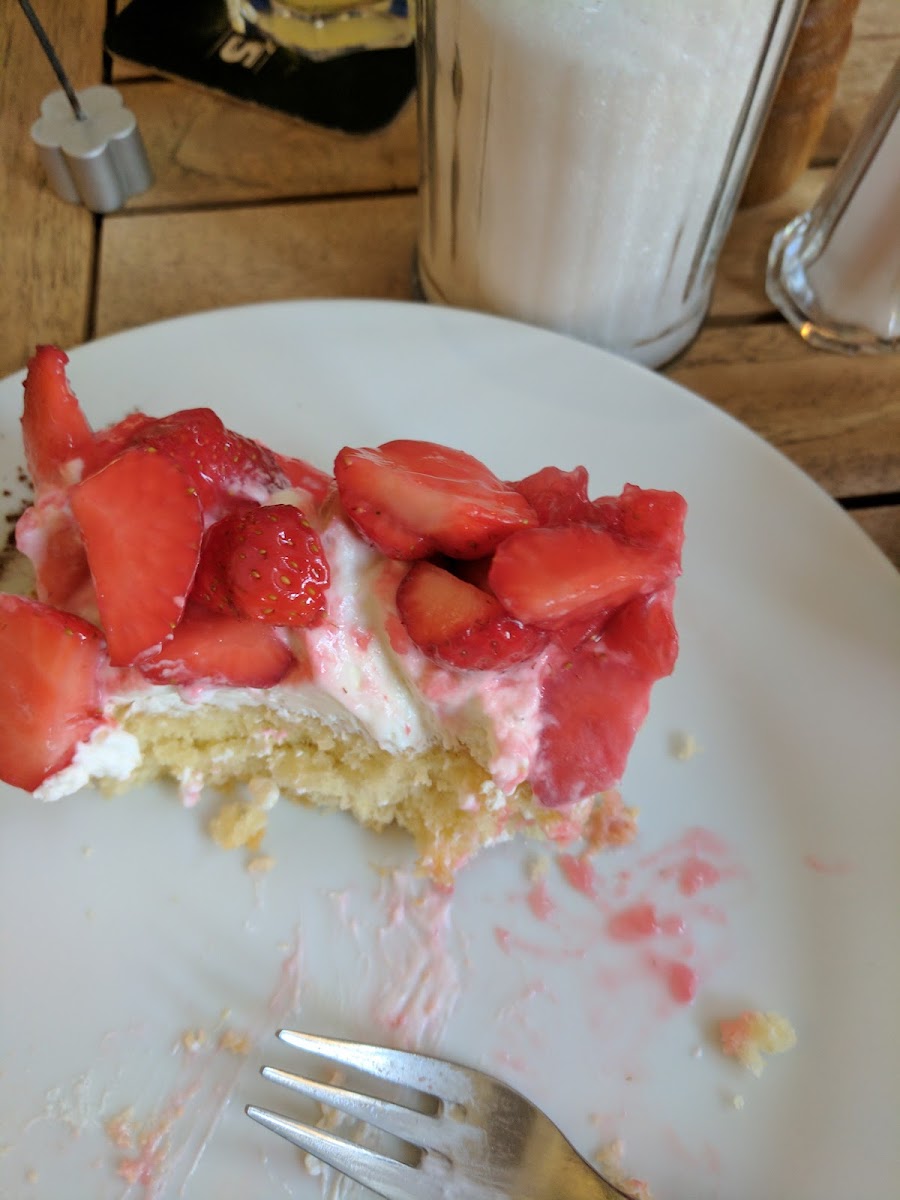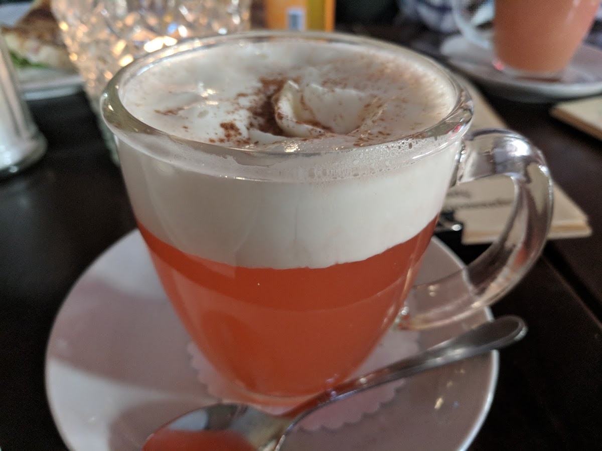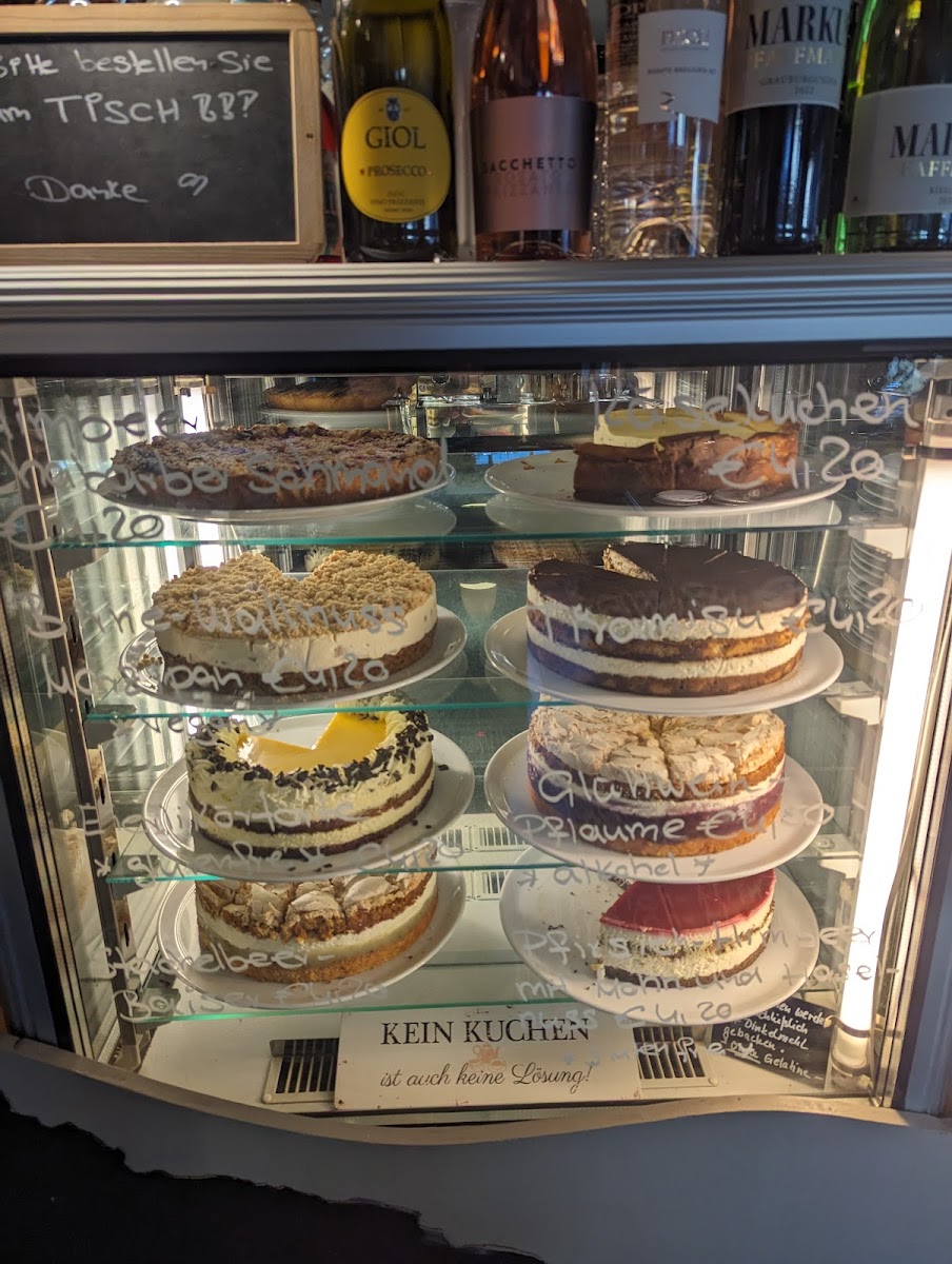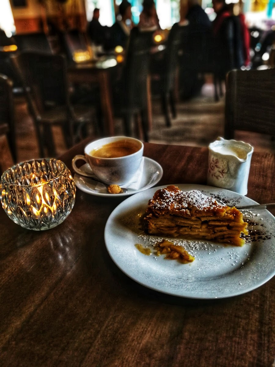 The menu highlights bring a nice range of options that mix traditional café favorites and some hearty bites: crêpes filled with tuna, a large vegetarian breakfast, and a variety of cakes including Himbeertorte (raspberry cake), Erdbeerkuchen (strawberry cake), and classics like Apfelstrudel and Donauwelle. Coffee here meets the expectations of a serious coffee shop — doubleshots of espresso and rich, creamy latte macchiatos are the norm, served alongside favorites like Bratapfelpunsch for a warming twist. The sweet offerings are eye-catching and often too tempting for those trying to stick to just coffee, which adds to the lively, somewhat indulgent energy of the place.
