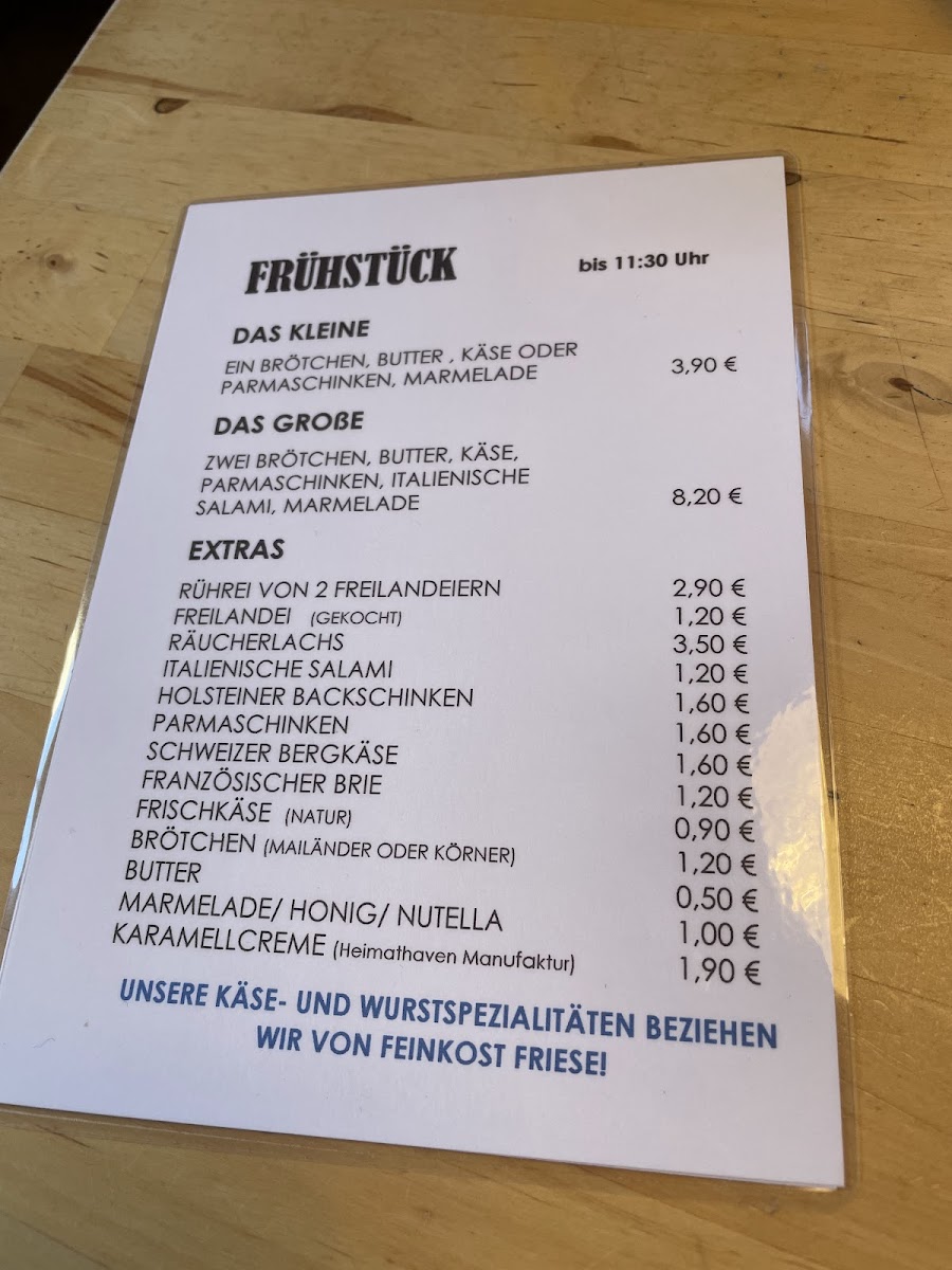 - Beverages: The menu includes a variety of coffee drinks such as espresso, latte macchiato, and double espresso, alongside other hot drinks like punch.
